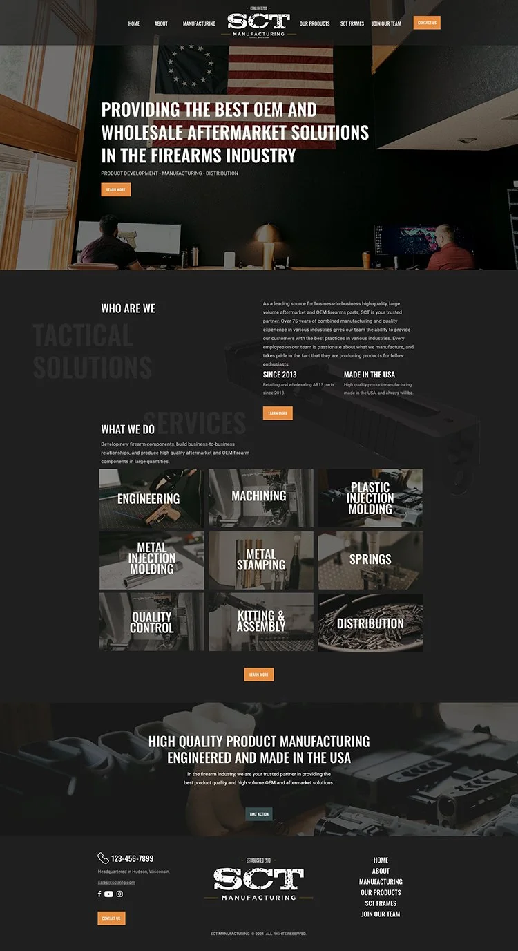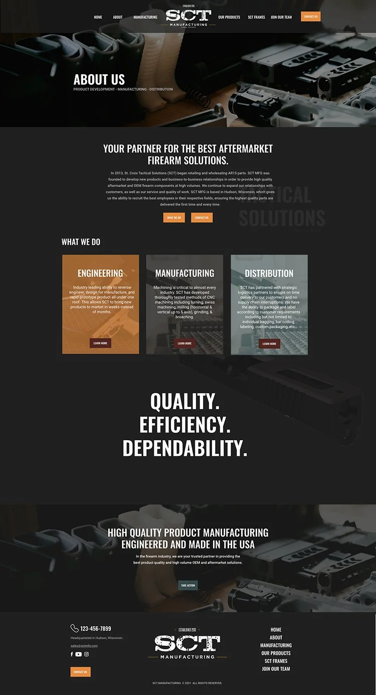 The St Croix Manufacturing website build was a part of a full brand re-design and website project by Seven Creative Co. With only a startup one-page site as an online presence for this company, this was a full build including creative direction and design, page content, visuals, Photography, brand guide, company values/verbiage and content.